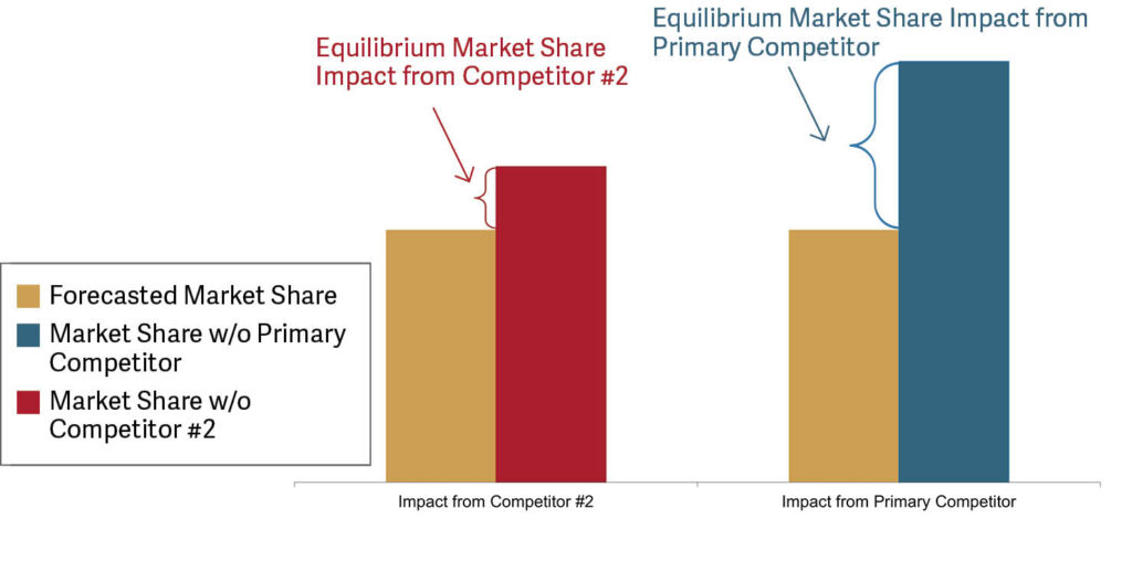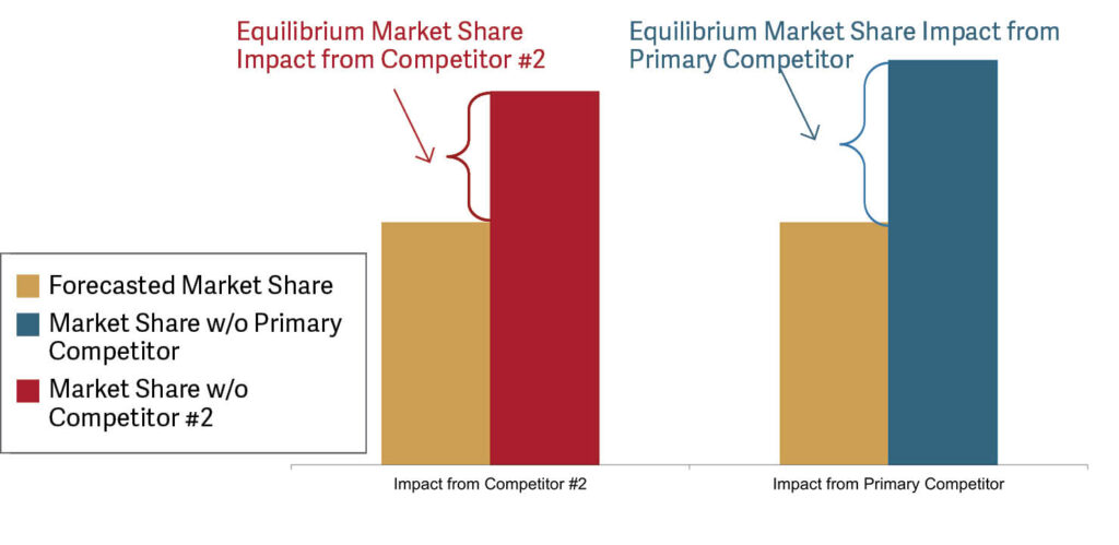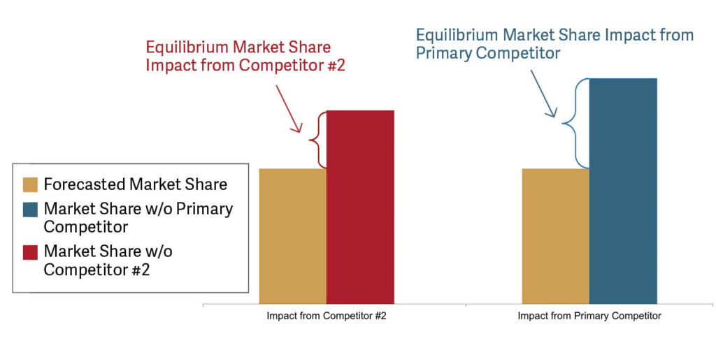 Further, Secretariat utilized financial modeling to assess the relative impact of having the primary competitor in the marketplace to having Competitor #2 in the marketplace in terms of market share in equilibrium. The analysis considered the relative market share impact across a variety of clinical indications in which the companies were expected to compete. Secretariat’s analysis demonstrated that licensing the primary competitor at the hypothetical negotiation was significantly more impactful in terms of equilibrium market share expectations than licensing Competitor #2 had been. See Figure 2.