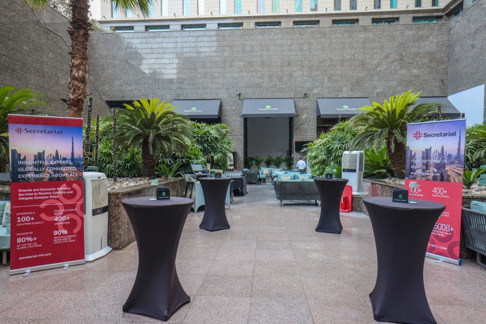 On Tuesday evening, Secretariat and Fulcrum Capital hosted a networking and cocktails event at the Sunken Garden in the Ritz Carlton DIFC. The event was a great success, providing a vibrant, relaxed setting for professionals to connect and share insights. Attendees enjoyed a selection of fine cocktails and hors d’oeuvres while engaging in stimulating conversations about the state of arbitration today and tomorrow.