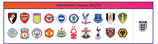 The EPL is a private company that is wholly owned by its 20 Member Clubs who make up the League at any one time. Each of the 20 clubs is a shareholder of the EPL.[51] The organization structure of the EPL for 2022-23 is presented below.[52]